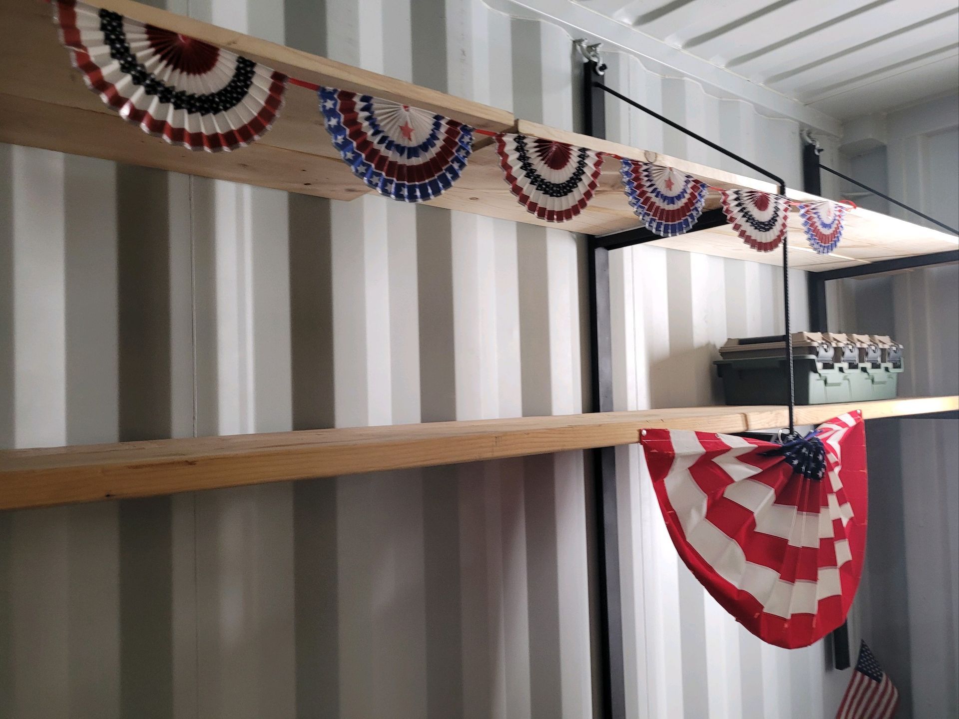We offer heavy duty custom shelves and organizing solutions, so no wasted space. We also offer custom rental packages for contractors that include electrical outlets and security lightning.